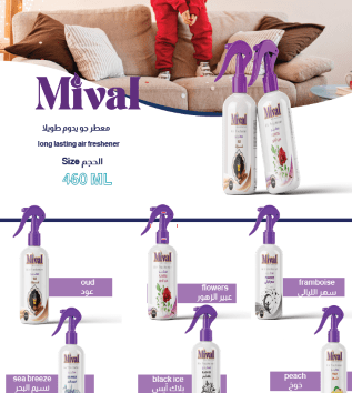 معطر الجو من ميڤال مش بس بيزيل الروائح الكريهة، لكنه كمان بيضيف لمسة منعشة لبيتك أو مكتبك. متوفر بروائح طبيعية زي عبير الزهور، نسيم البحر، والعود، سهر الليالي، بلاك آيس، الخوخ، عشان يناسب كل الأذواق.